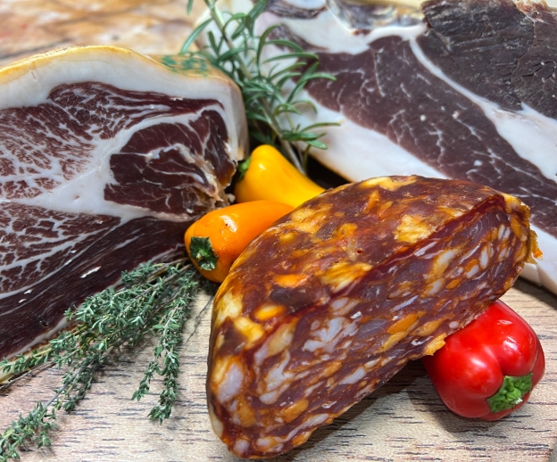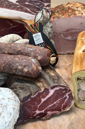 Au rythme des saisons, pour vous offrir les meilleures saveurs tout au long de l’année, profitez d’un grand choix de jambons secs et saucissons secs, saucisson de Salers (80% bœuf Salers et 20% de porc), jambon et saucisson au porc noir de Bigorre, pâtés et conserves maison.